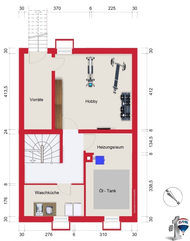 Besondere Einrichtungen: Markise im Terrassenbereich (2012) elektrisch, Klimaanlage im DG, Treppenlift, Entkalkungsanlage.